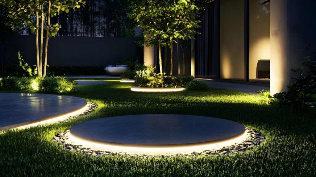 • Our Approach: We use durable, weather-resistant, low-voltage LED fixtures to strategically highlight your home’s architectural features, trees, and garden beds. From subtle path lights to dramatic uplighting, we can design a system that makes your home the envy of the neighborhood.